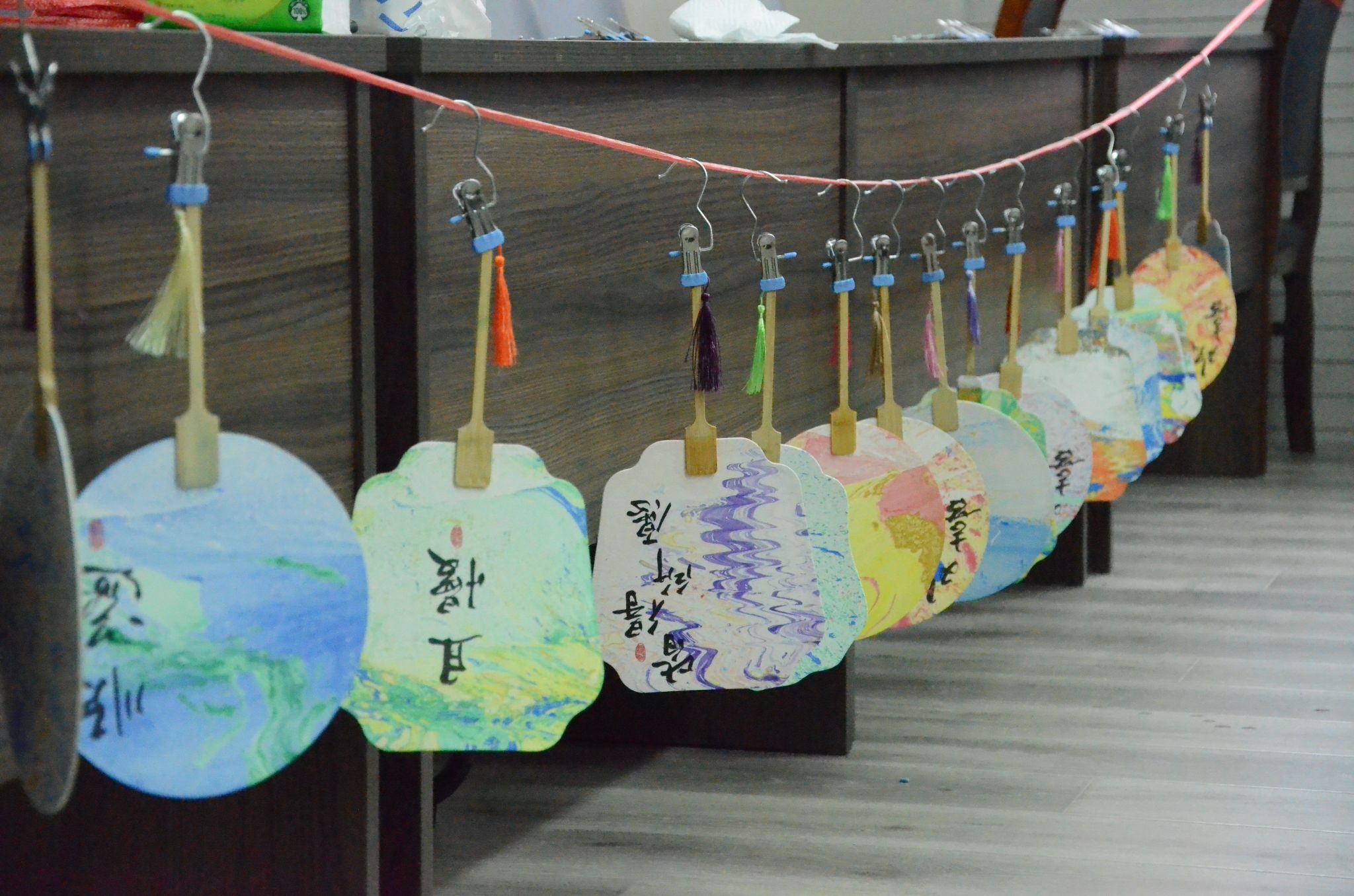 老师们在了解了漆扇的历史渊源、制作流程之后,纷纷加入制作行列。老师们在志愿者的帮助下,充分发挥自己的想象力和创造力,挑选颜色、设计图案,将传统技艺与现代审美相结合,在制作漆扇的过程中,大家互相学习、互相帮助,共同完成了创作过程,促进了教师之间的交流与互动。随着漆扇渐次成型,这些漆扇或如泼墨山水形意兼备,或似工笔花鸟细腻灵动,每位老师都创作出了专属于每个人的独特漆扇作品,彰显了学院师生对传统文化的传承和热爱。