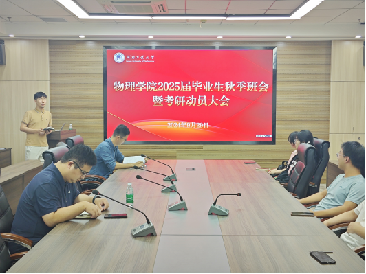 在惟德楼307会议室举行2025届毕业生秋季班会暨考研动员大会,动员鼓励学院毕业生积极备战考研,并传达了近期学校、学院关于学生安全工作的相关要求。学院党委副书记张宾、毕业班辅导员周士越、学院专业教师柴清祯博士及2025届毕业生参加了会议。会议由周士越主持。