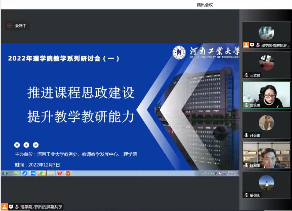 杨武、石晓燕、慕运动、曹建莉、李巧利和李栋浩6位教师分享了关于课程改革和课程思政、课程建设与人才培养、课堂教学和教学竞赛、创新信息技术手段等方面的经验,为老师们提供了一场教学能力提升的思想盛宴,使大家从不同角度体验到了教学改革和能力提升的魅力。