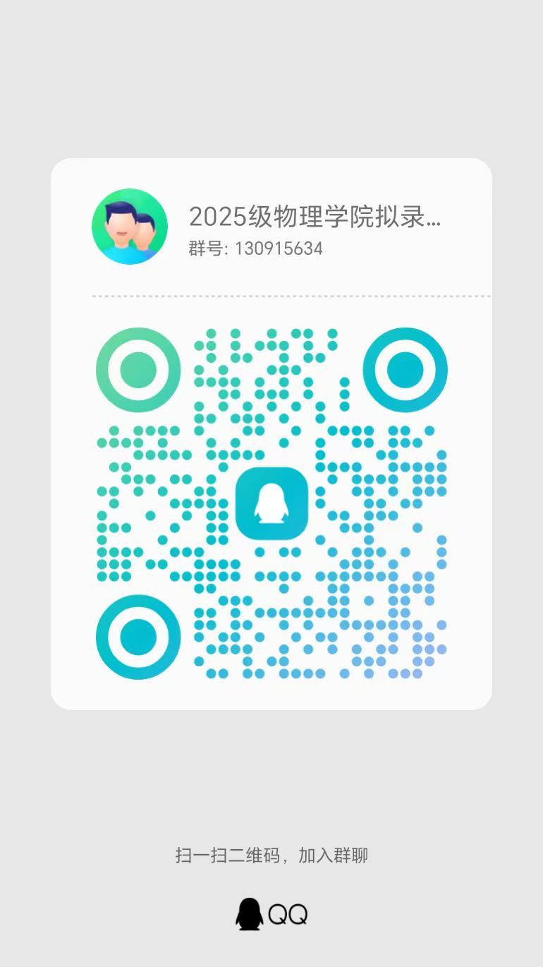 2025级拟录取硕士研究生扫描下方二维码加入QQ群,该群主要用于拟录取相关信息的通知,禁止同学们相互私聊或在群内发表与拟录取工作无关的言论。如有疑问,请致电0371-67756727。