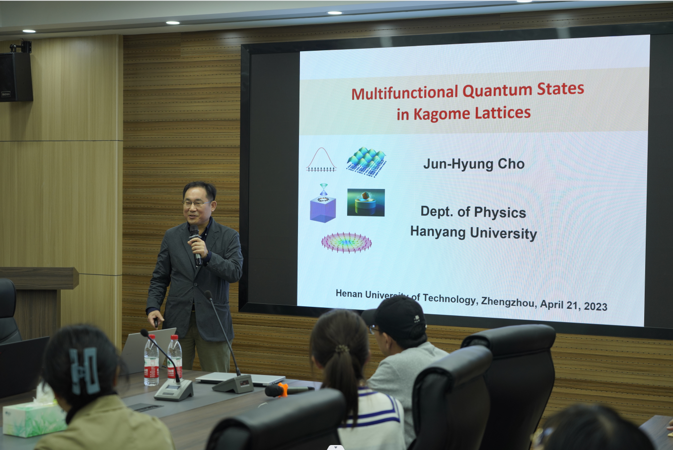2023421日,应成人漫画 邀请,韩国汉阳大学物理系赵俊衡(Jun-Hyung Cho)教授莅临成人漫画 进行学术交流,并做了题为“Multifunctional Quantum States in Kagome Lattices”的学术报告,本次学术报告会由富笑男院长主持,物理系相关教师、研究生和创新实验班学员参加了会议。富笑男院长代表学院全体师生对赵俊衡教授的到来表示了热烈的欢迎,并向参会师生简单介绍赵俊衡教授的学术经历和研究领域