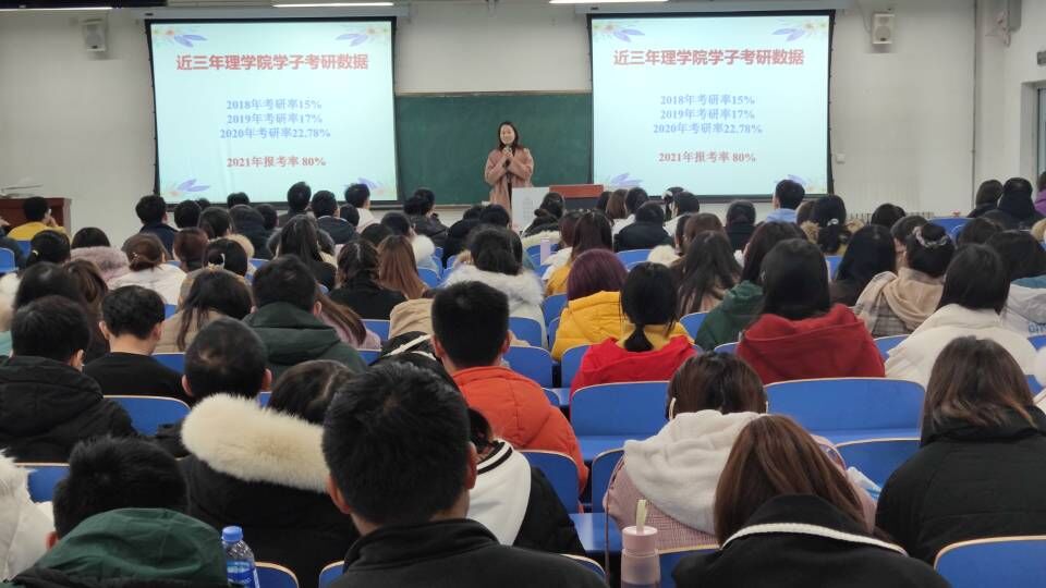 曹峥深入浅出,用数据介绍了近5年来我院的考研情况,用往届考研学生的实例分享了其中的经验教训,结合为什么考研、考研的可行性、考研的形势和相关政策等方面,激励大家向榜样学习,抓住机遇、积极备战。