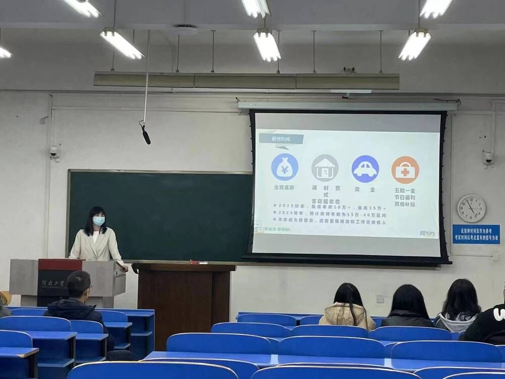 与新东方河南省域在4号楼107教室联合举办了专场招聘会,此次招聘会主要面向2024届毕业生。招聘会由新东方河南省域人力招聘经理权利、新东方河南省域校招负责人成昕宇、新东方河南省域师训负责人张娅杰宣讲,成人漫画
