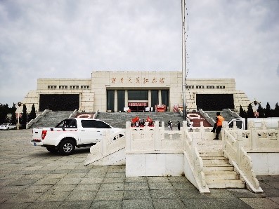 午饭过后,我徒步2.5h来到狮脑山山顶,坐落于山西省阳泉市狮脑山,包括百团大战纪念碑和百团大战纪念馆两个部分。纪念碑是由主碑、副碑、圆雕、题字碑、烽火台、“长城”等组成的建筑群。主碑与3个副碑组成一个巨大的箭头,指向石太铁路,寓意百团大战以破击正太(石太)铁路拉开序幕。东西两侧的4个烽火台与蜿蜒起伏的“长城”连接,意味着中国共产党领导的人民军队,是中华民族坚不可摧的钢铁长城。纪念馆分上、下两个展厅,展览分“惊世壮举,辉煌战果”、“英雄史诗,宏伟工程”、“不朽精神,深刻教益”和纪念百团大战的书画四大部分,以100多幅珍贵照片、图片生动地再现了百团大战的英雄业绩。
