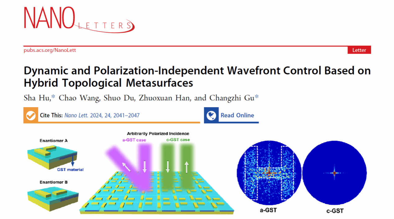 青年教师胡莎博士在纳米科技领域国际顶级期刊《Nano Letters》(中科院一区TOP,IF = 10.8)上发表了题为“Dynamic and Polarization-Independent Wavefront Control Based on Hybrid Topological Metasurfaces”(DOI: 10.1021/acs.nanolett.3c04621)的研究型论文。胡莎博士为论文的第一作者和第一通讯作者,中科院物理所顾长志研究员为共同通讯作者,成人漫画